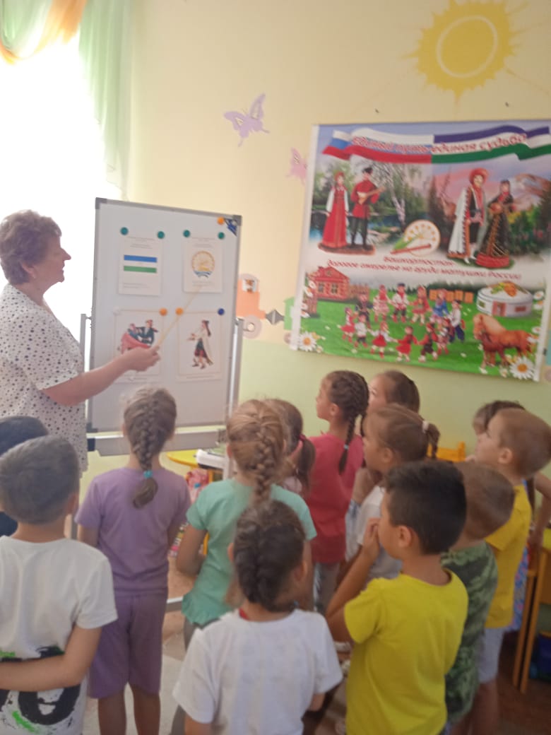 С воспитанниками старших и подготовительных групп провели развлечение "День Республики Башкортостан".